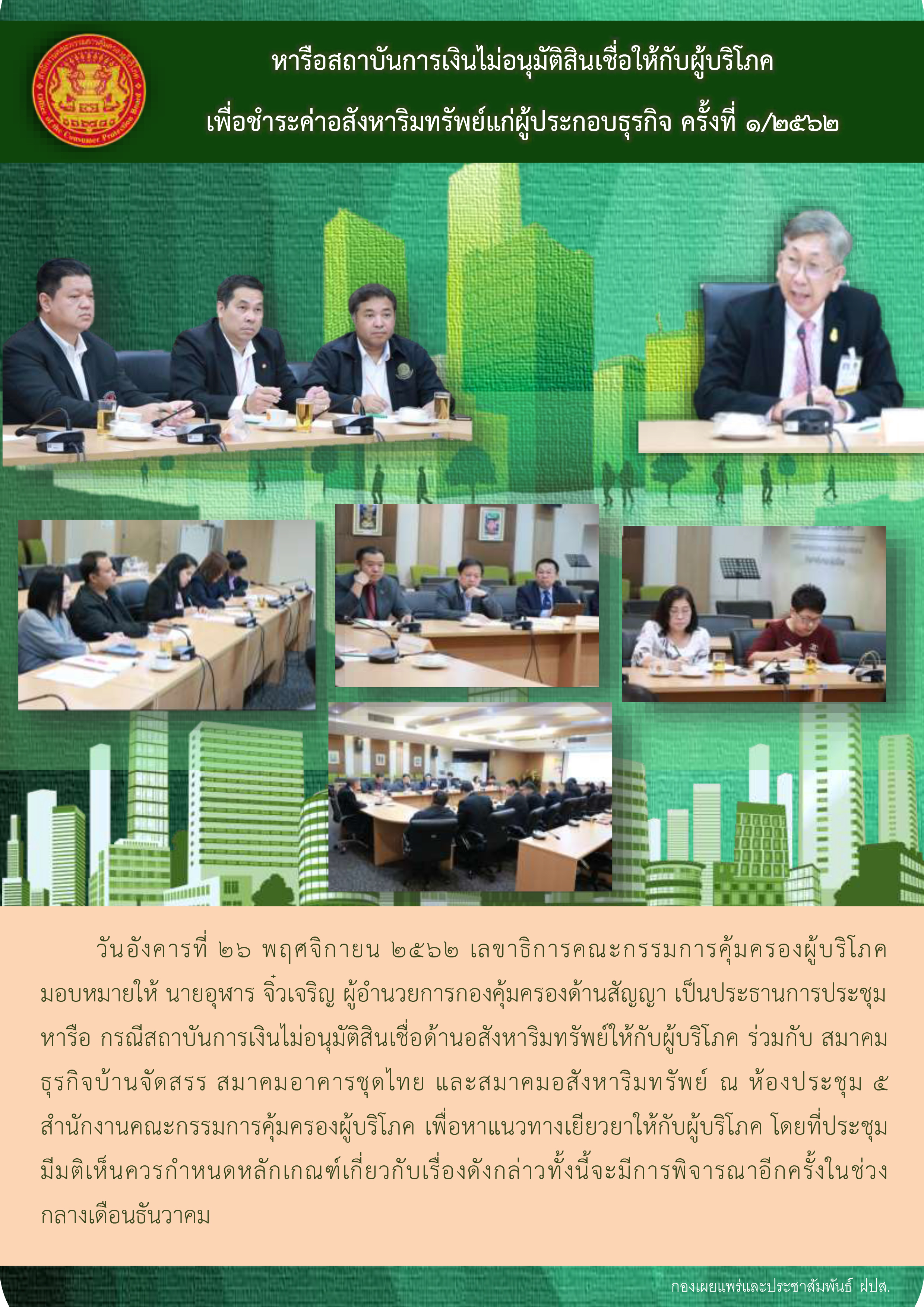 หารือสถาบันการเงินไม่อนุมัติสินเชื่อให้กับผู้บริโภค เพื่อชำระค่าอสังหาริมทรัพย์แก่ผู้ประกอบธุรกิจ ครั้งที่ 1/2562