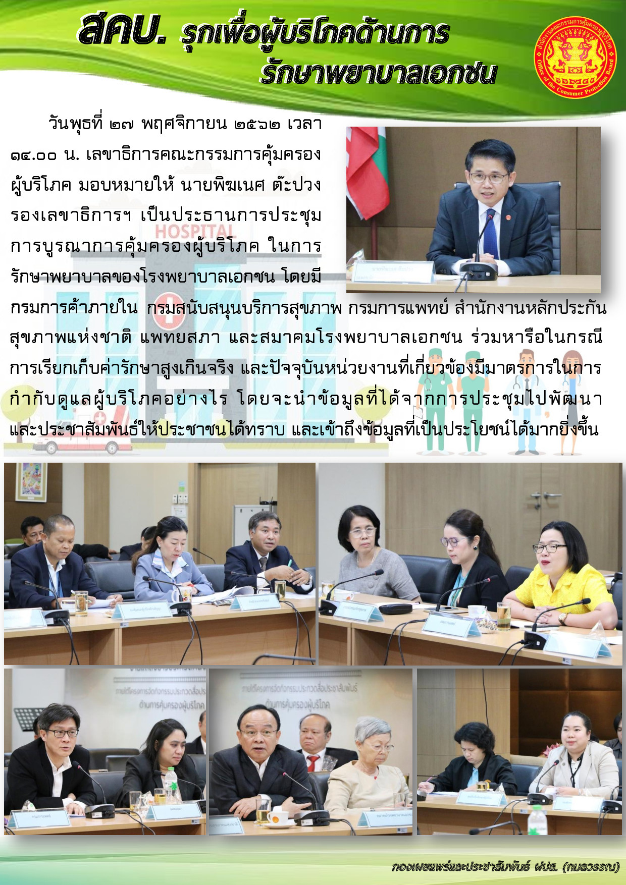 สคบ.รุกเพื่อผู้บริโภคด้านการรักษาพยาบาลเอกชน