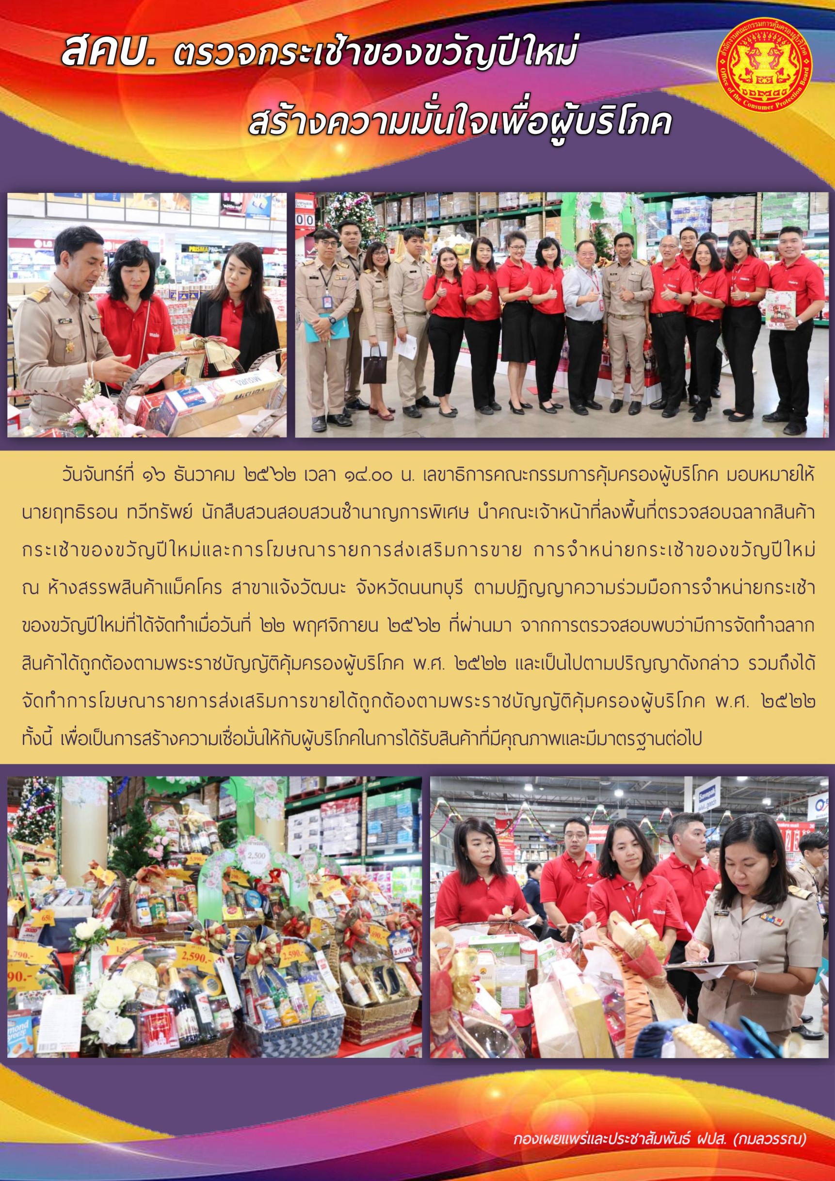สคบ.ตรวจกระเช้าของขวัญปีใหม่ สร้างความมั่นใจเพื่อผู้บริโภค
