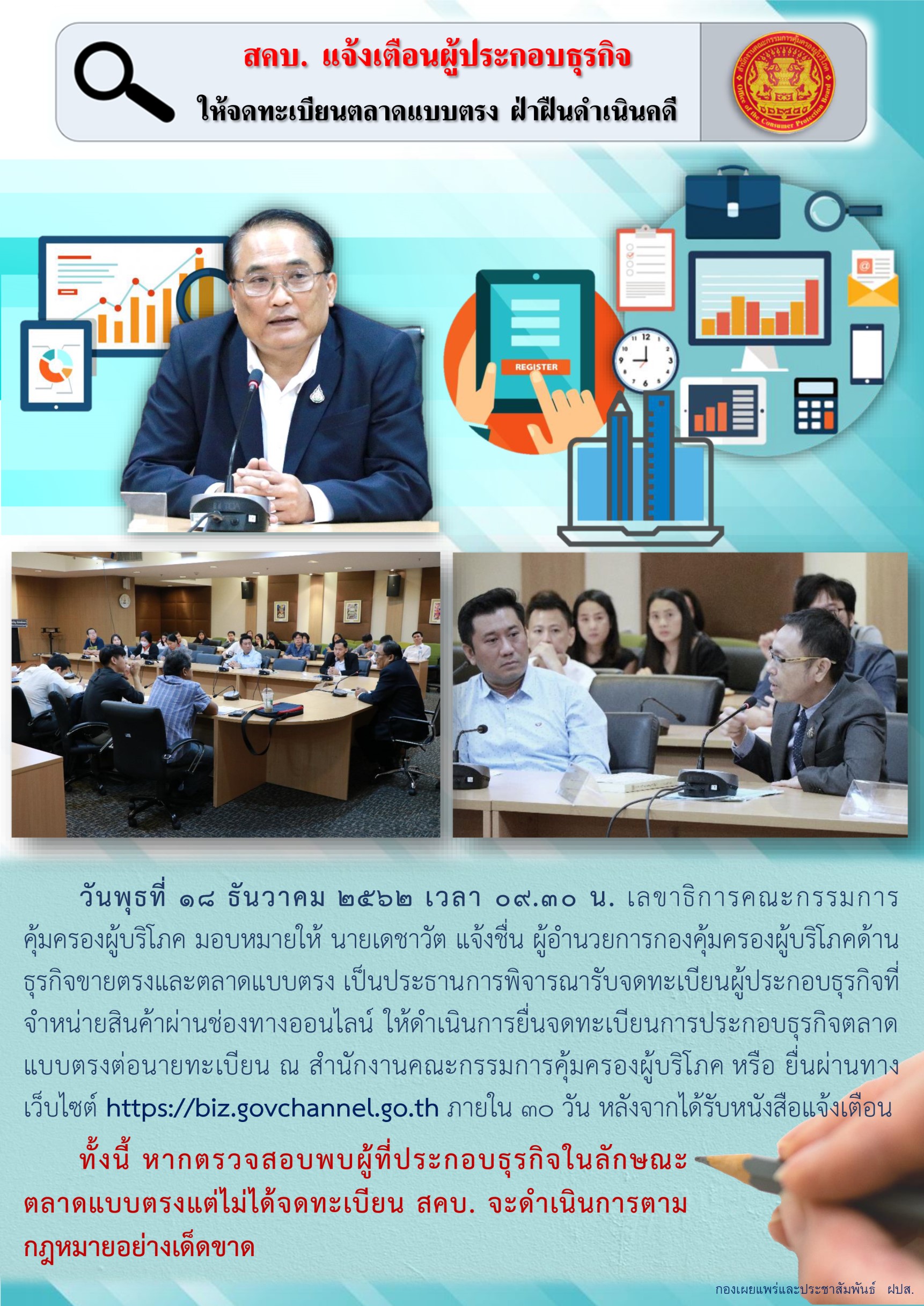 สคบ.แจ้งเตือนผู้ประกอบธุรกิจให้จดทะเบียนตลาดแบบตรง ฝ่าฝืนดำเนินคดี