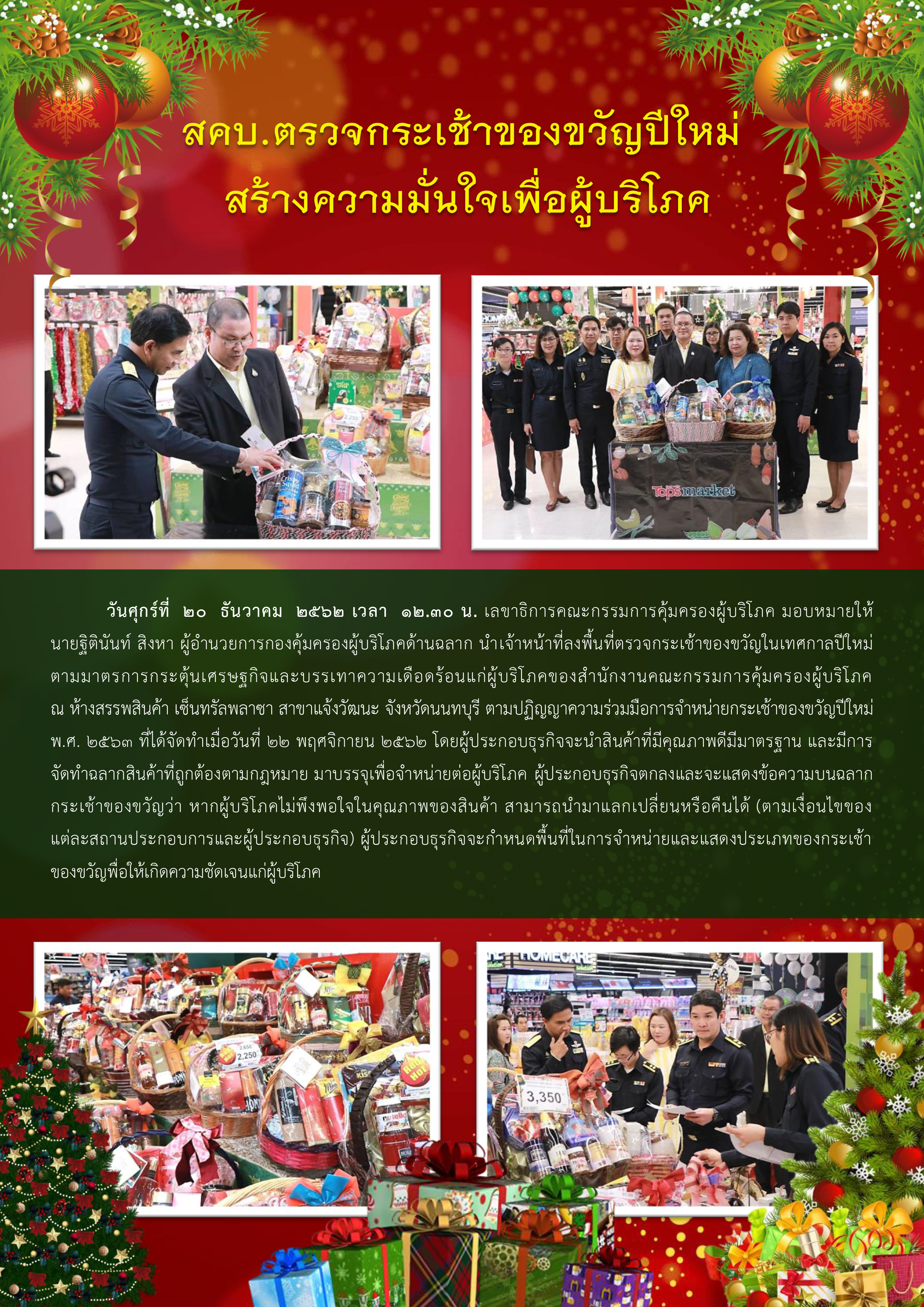 สคบ.ตรวจกระเช้าของขวัญปีใหม่ สร้างความมั่นใจเพื่อผู้บริโภค