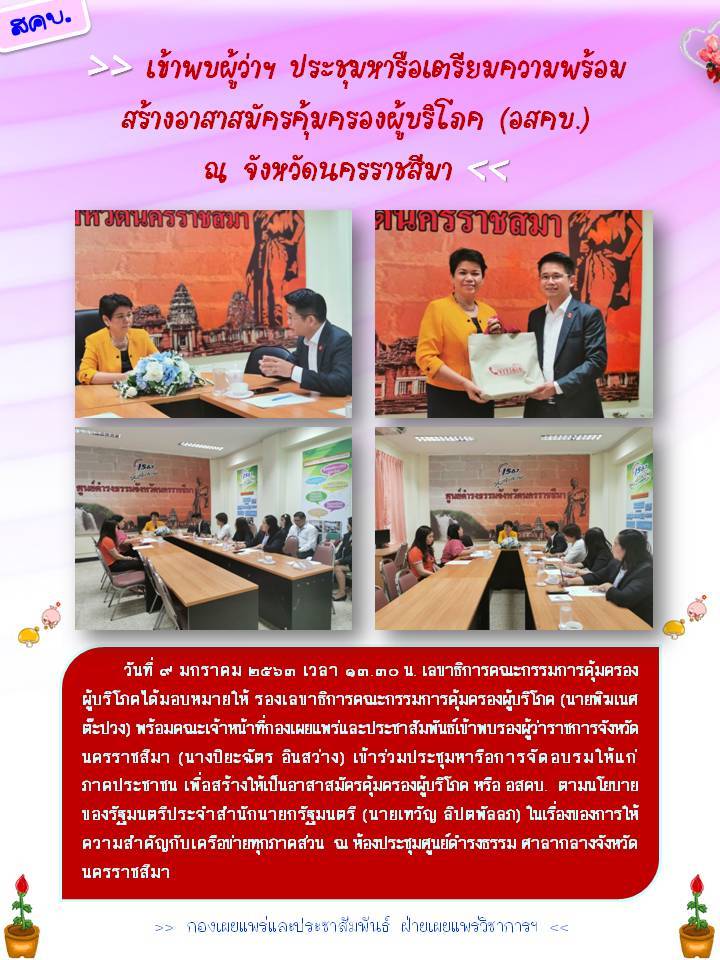 เข้าพบผู้ว่าฯ ประชุมหารือเตรียมความพร้อมสร้างอาสาสมัครคุ้มครองผู้บริโภค (อสคบ.) ณ จังหวัดนครราชสีมา