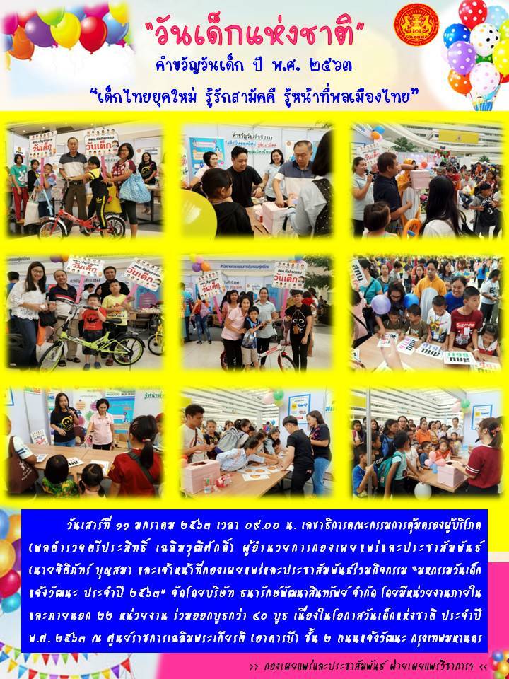 วันเด็กแห่งชาติ คำขวัญวันเด็ก ปี พ.ศ. ๒๕๖๓ "เด็กไทยยุคใหม่ รู้รักสามัคคี รู้หน้าที่พลเมืองไทย"