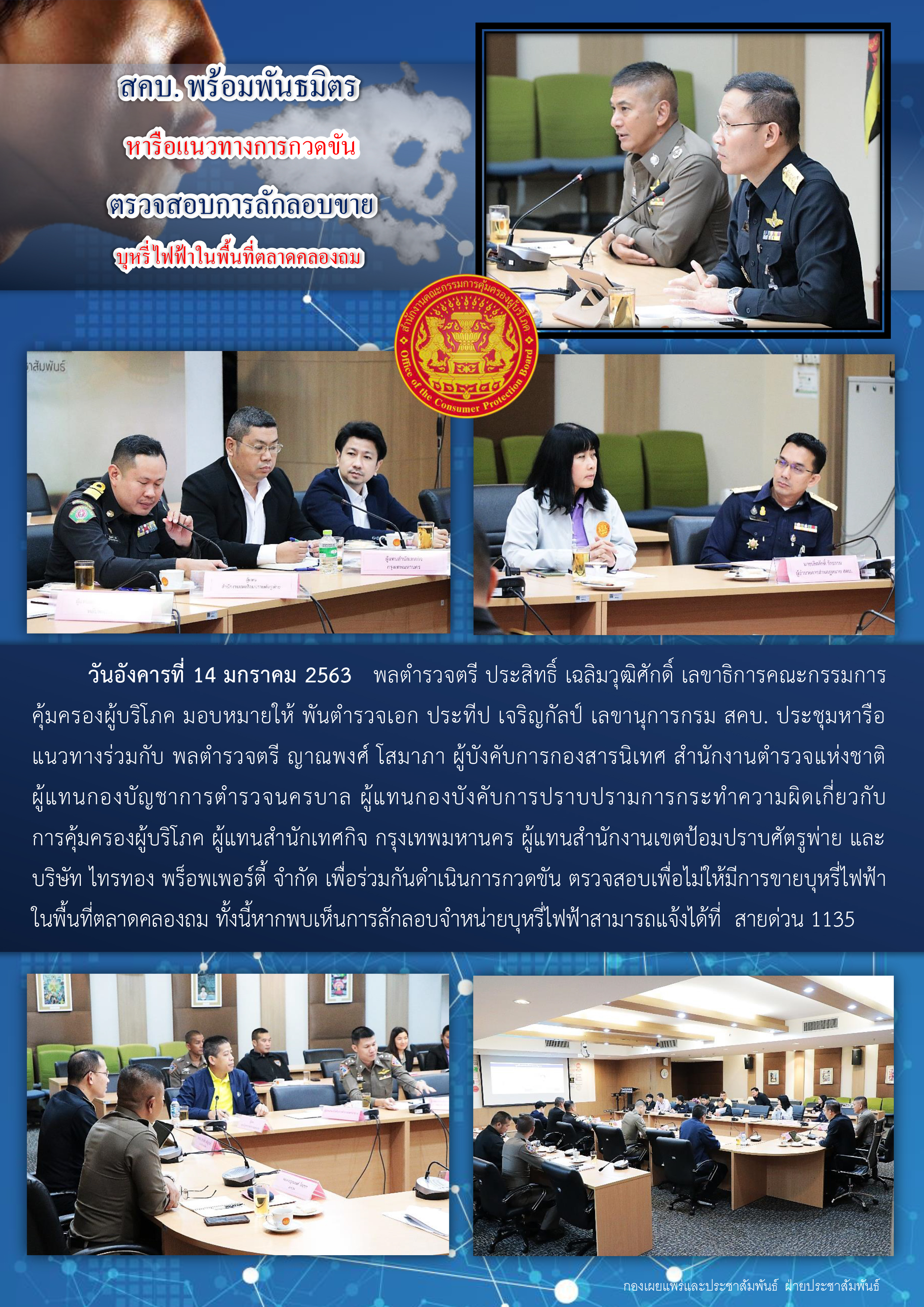 สคบ.พร้อมพันธมิตรหารือแนวทางการกวดขันตรวจสอบการลักลอบขายบุหรี่ไฟฟ้าในพื้นที่ตลาดคลองถม