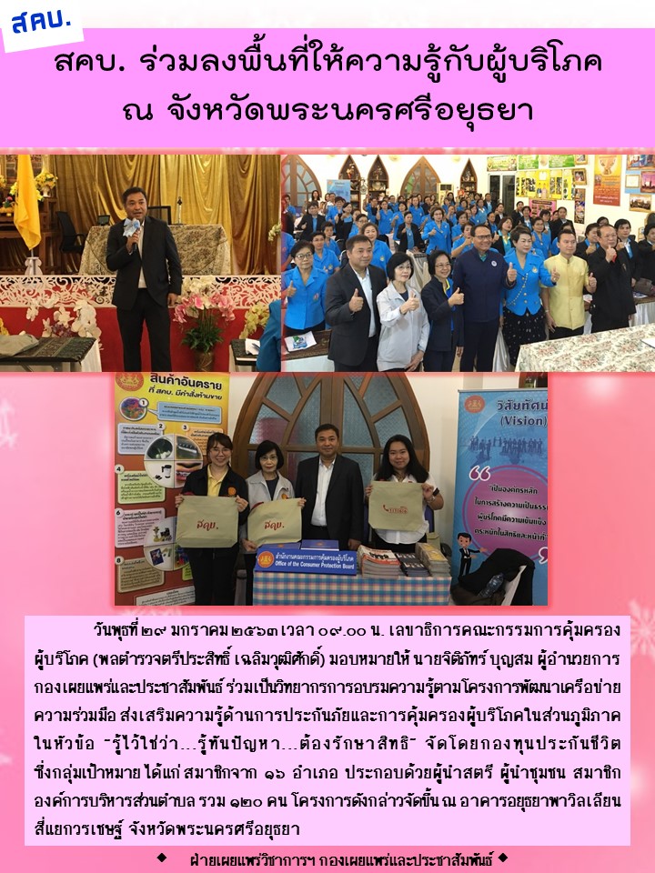 สคบ.ร่วมลงพื้นที่ให้ความรู้กับผู้บริโภค ณ จังหวัดพระนครศรีอยุธยา