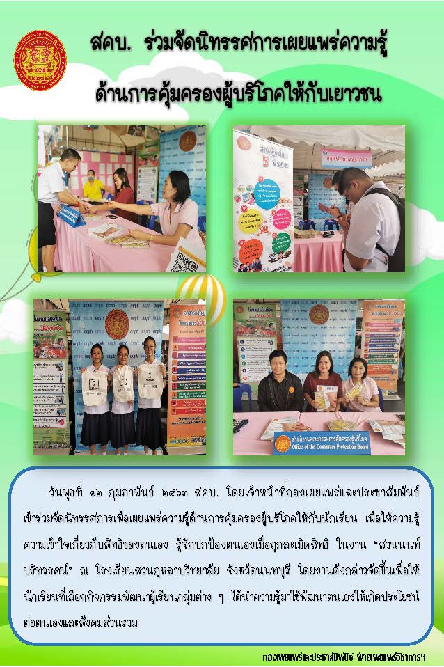 สคบ.ร่วมจัดนิทรรศการเผยแพร่ความรู้ด้านการคุ้มครองผู้บริโภคให้กับเยาวชน