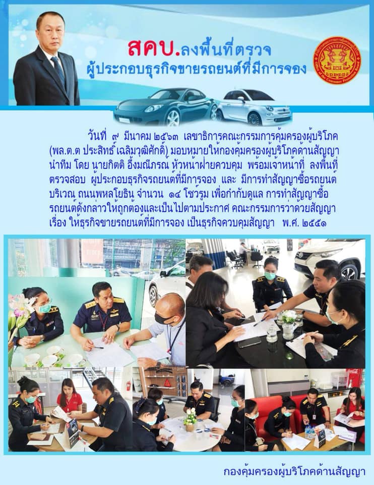 สคบ.ลงพื้นที่ตรวจผู้ประกอบธุรกิจขายรถยนต์ที่มีการจอง