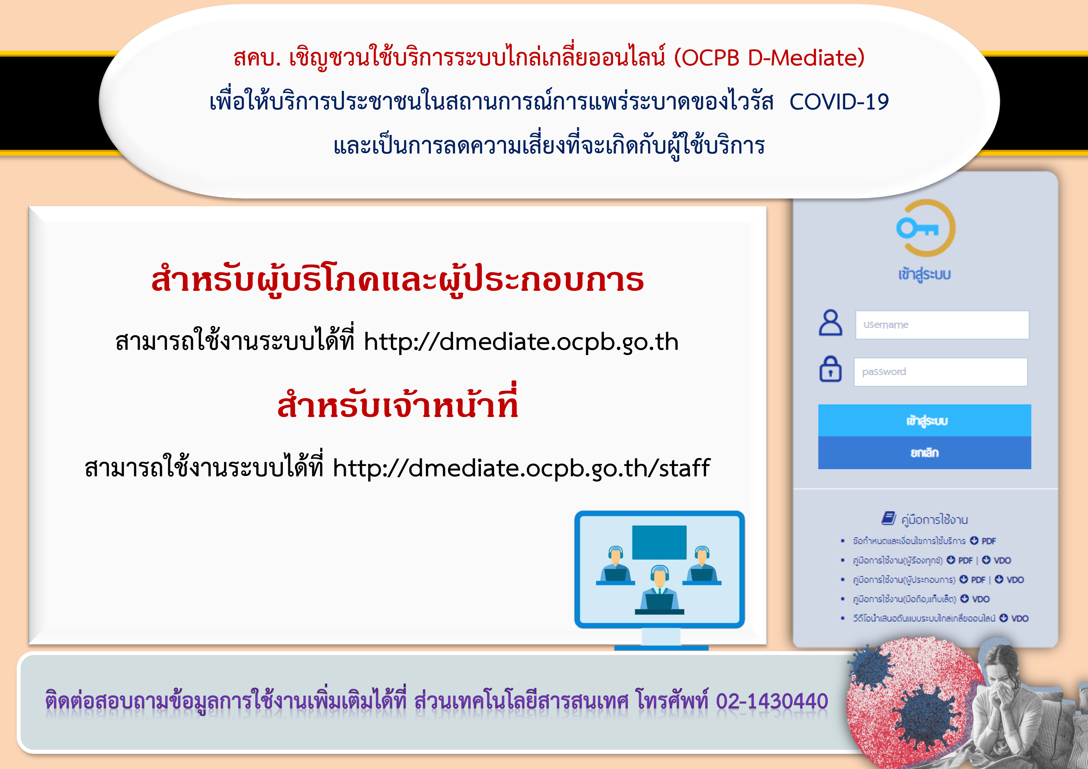 สคบ.เชิญชวนใช้บริการระบบไกล่เกลี่ยออนไลน์ (OCPB D-Mediate)