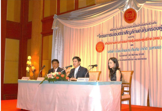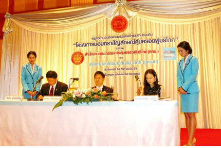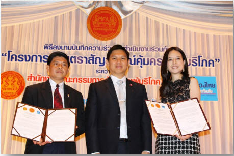 นายวรวัจน์ เอื้ออภิญญกุล รัฐมนตรีประจำสำนักนายกรัฐมนตรีในฐานะประธานกรรมการคุ้มครองผู้บริโภค เป็นประธานในพิธีลงนามใน MOU (บันทึกความตกลงการดำเนินงานร่วมกัน) ระหว่าง สคบ.กับบริษัท เมืองไทยประกันภัย จำกัด (มหาชน) เพื่อรองรับกับนโยบาย "ตราสัญลักษณ์คุ้มครองผู้บริโภค ”พัฒนาคุณภาพและประสิทธิภาพการคุ้มครองผู้บริโภค ขึ้นไปอีกระดับ และยังเป็นการรองรับการก้าวสู่ประชาคมอาเซียนอีกขั้นหนึ่ง