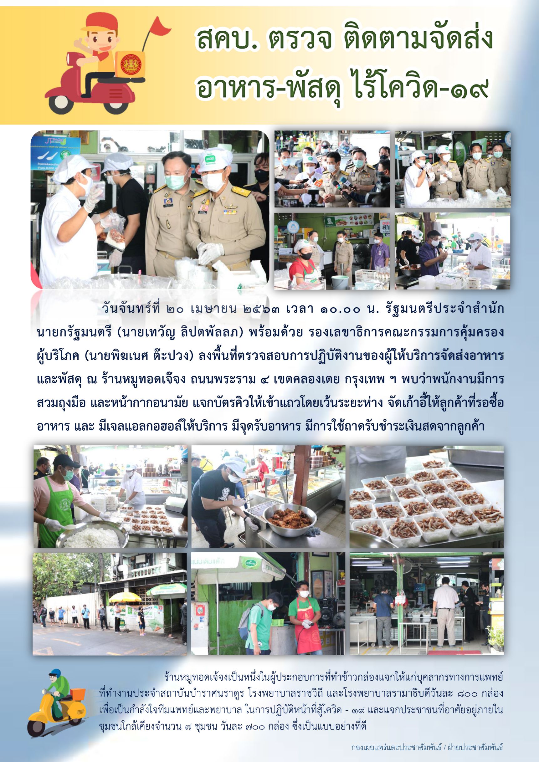สคบ. ตรวจ ติดตาม จัดส่งอาหาร-พัสดุ ไร้โควิด-19