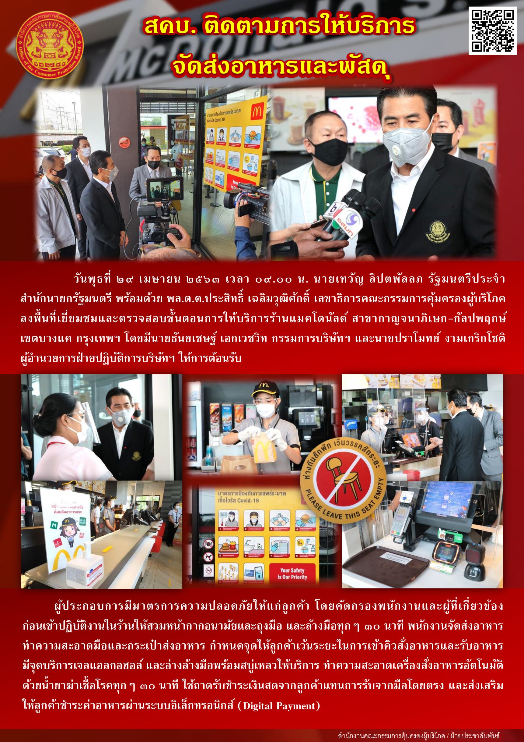 สคบ.ติดตามการให้บริการจัดส่งอาหารและพัสดุ