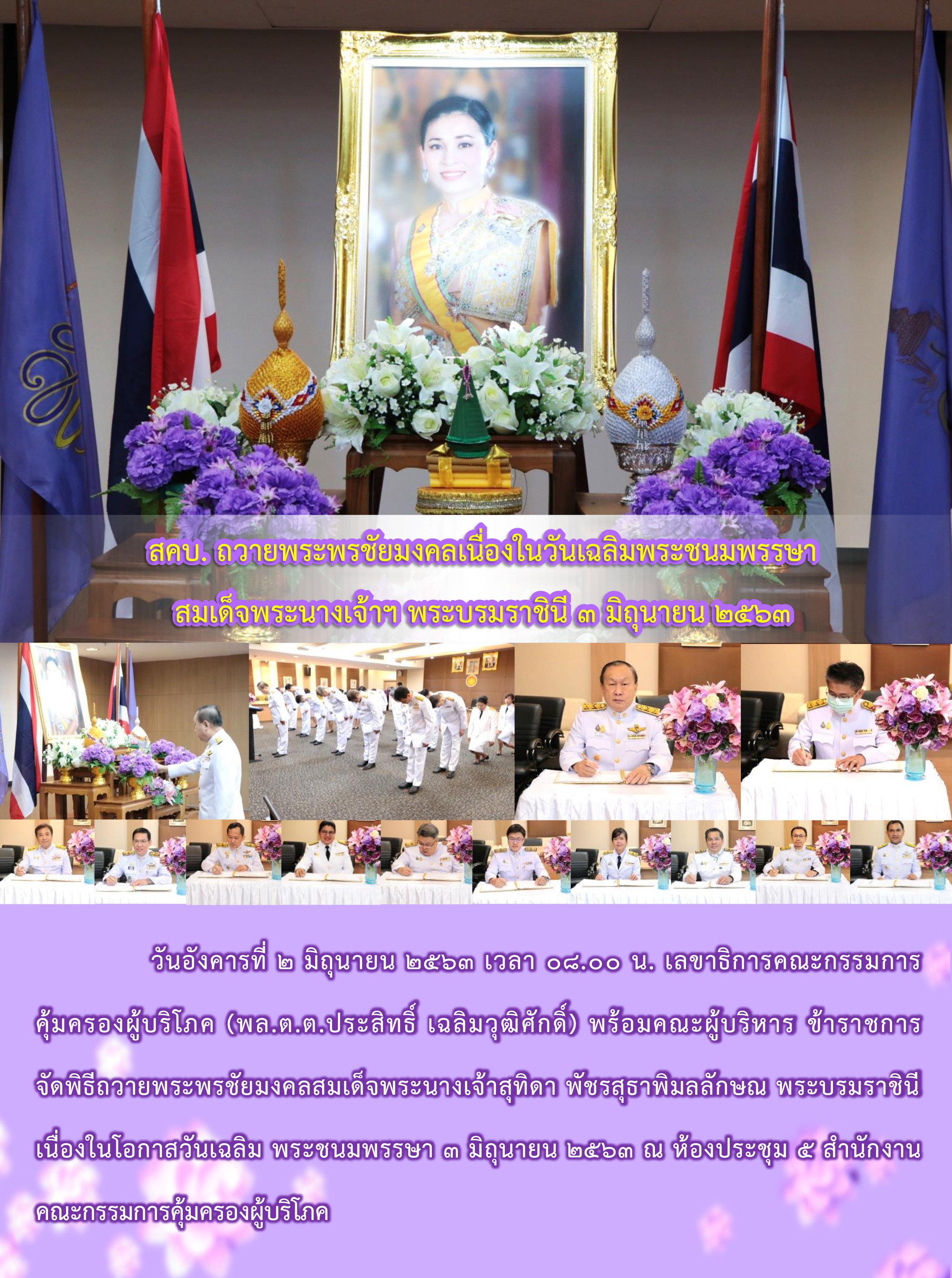 สคบ. ถวายพระพรชัยมงคลเนื่องในวันเฉลิมพระชนมพรรษาสมเด็จพระนางเจ้าฯ พระบรมราชินี ๓ มิถุนายน ๒๕๖๓
