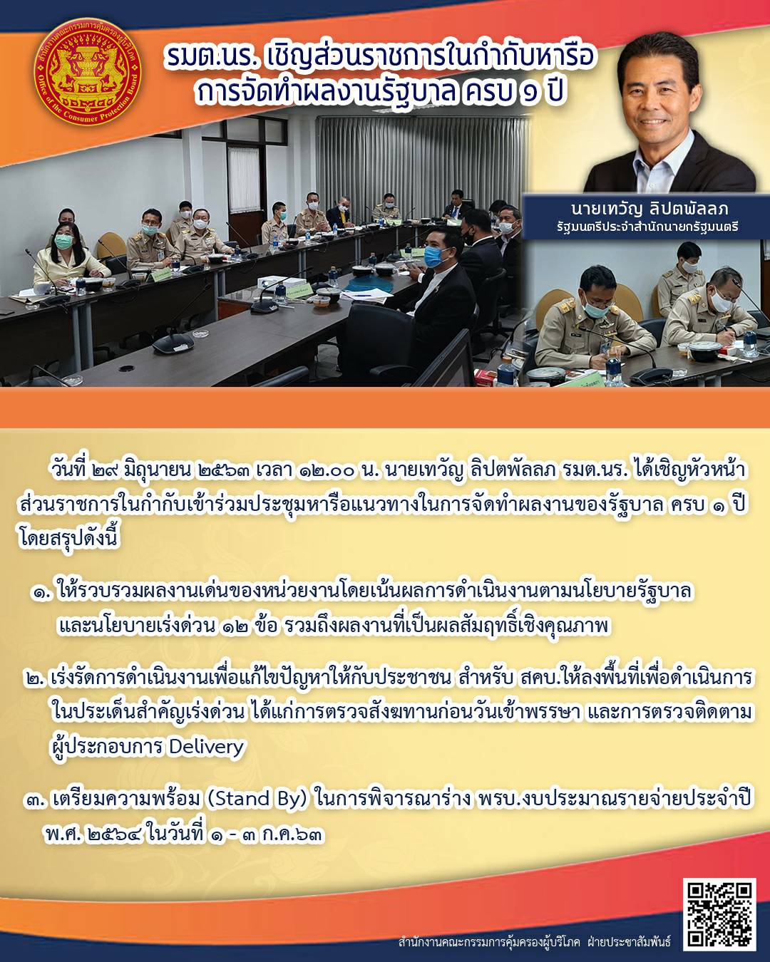 รมต.นร.เชิญส่วนราชการในกำกับหารือการจัดทำผลงานรัฐบาล ครบ ๑ ปี