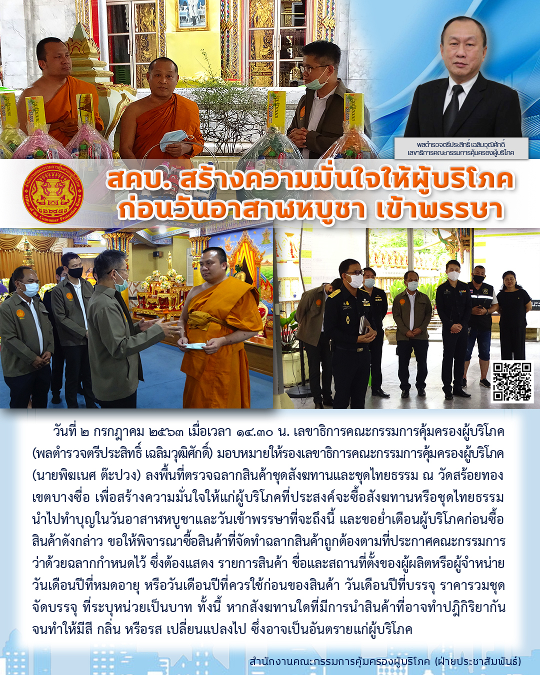 สคบ.สร้างความมั่นใจให้ผู้บริโภคก่อนวันอาสาฬหบูชา เข้าพรรษา