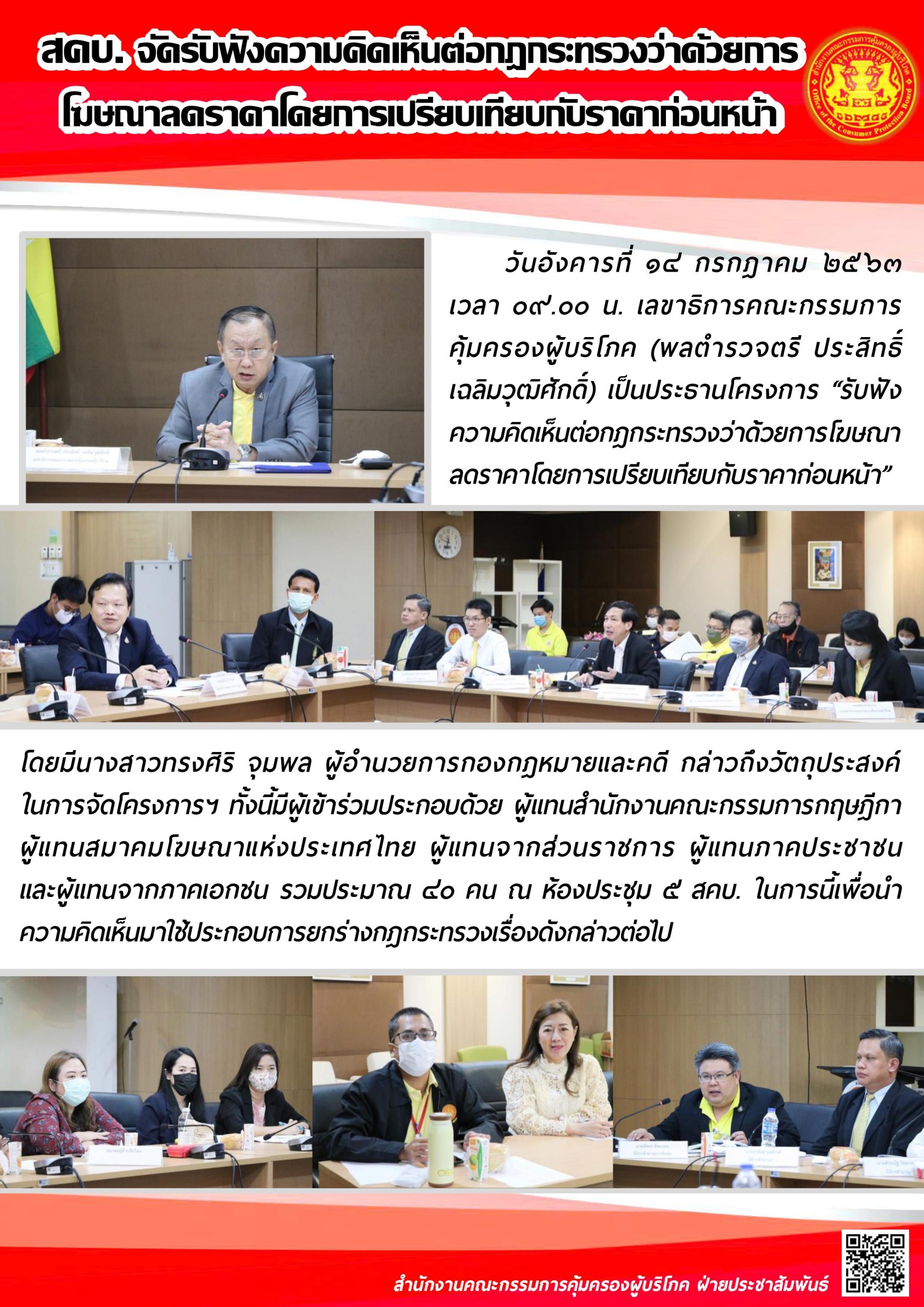 สคบ.จัดรับฟังความคิดเห็นต่อกฎหมายว่าด้วยการโฆษณาลดราคาโดยการเปรียบเทียบกับราคาก่อนหน้า