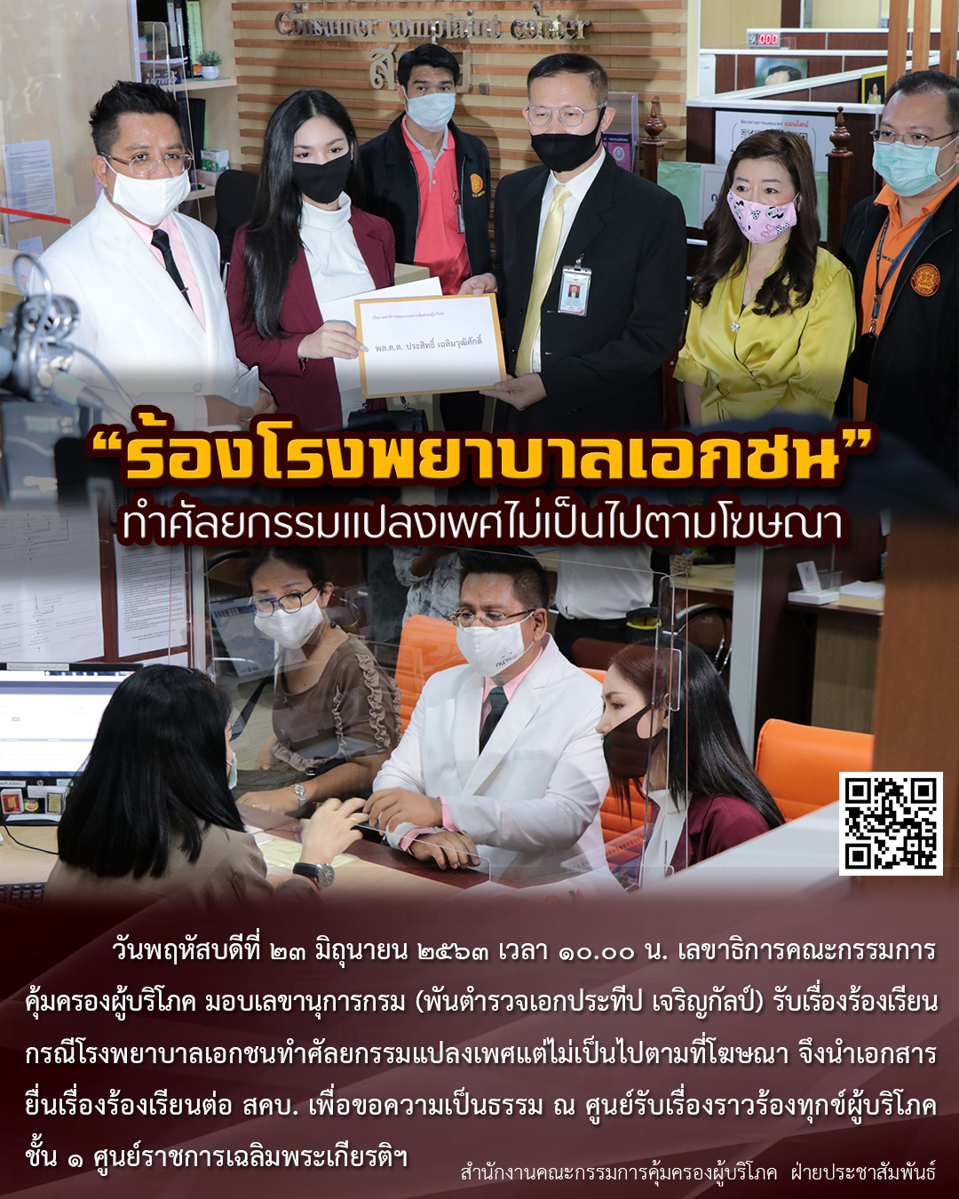 "ร้องโรงพยาบาลเอกชน"ทำศัลยกรรมแปลงเพศไม่เป็นไปตามโฆษณา