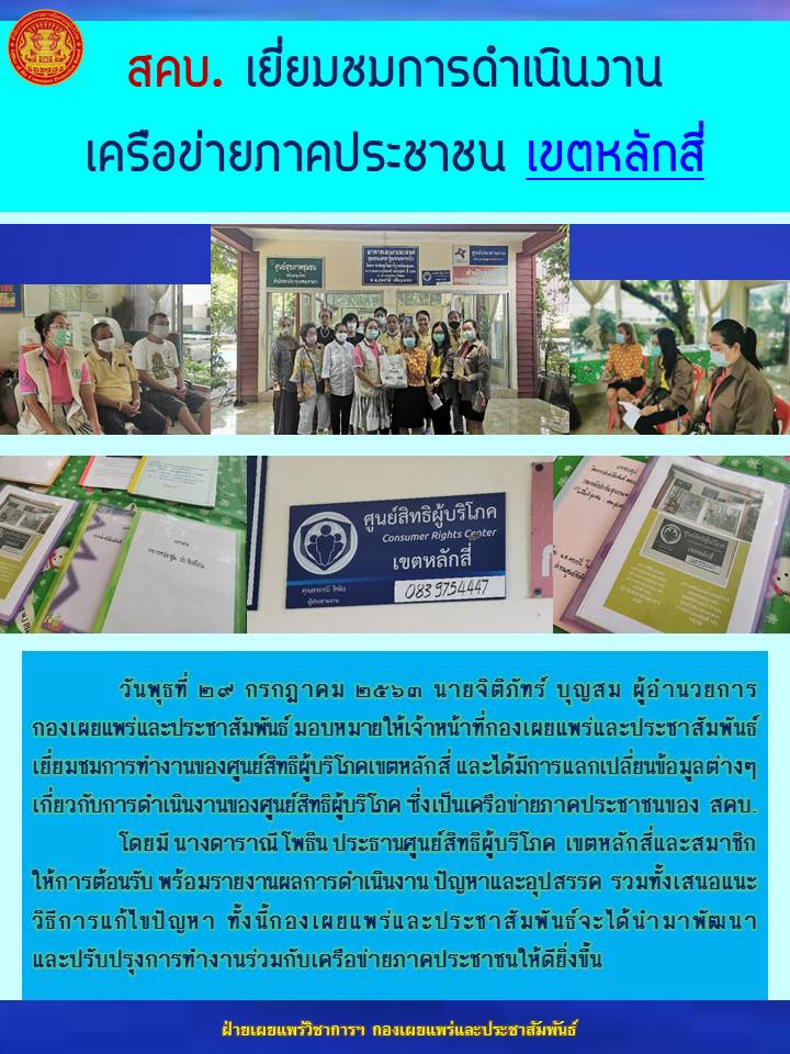 สคบ.เยี่ยมชมการดำเนินเครือข่ายภาคประชาชน เขตหลักสี่