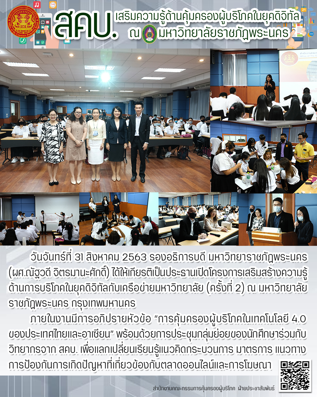 สคบ.เสริมความรู้ด้านคุ้มครองผู้บริโภคในยุคดิจิทัล ณ มหาวิทยาลัยราชภัฎพระนคร
