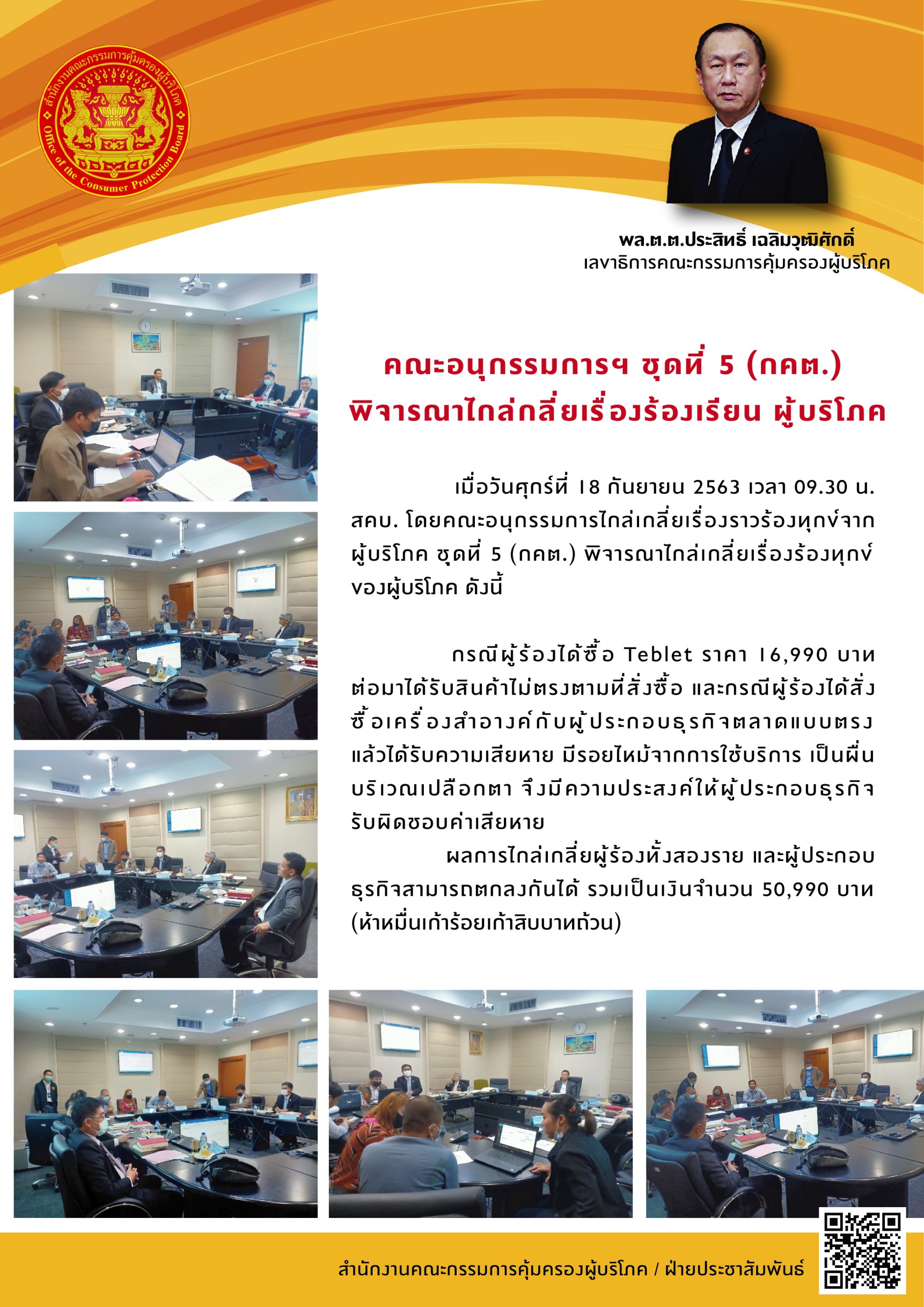 คณะอนุกรรมการฯ ชุดที่ 5 (กคต.) พิจารณาไกล่เกลี่ยเรื่องร้องเรียนผู้บริโภค
