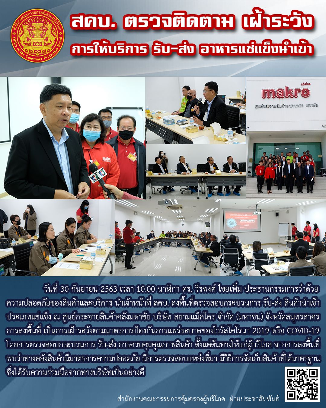 สคบ.ตรวจติดตาม เฝ้าระวัง การให้บริการ รับ-ส่ง อาหารแช่เย็นนำเข้า