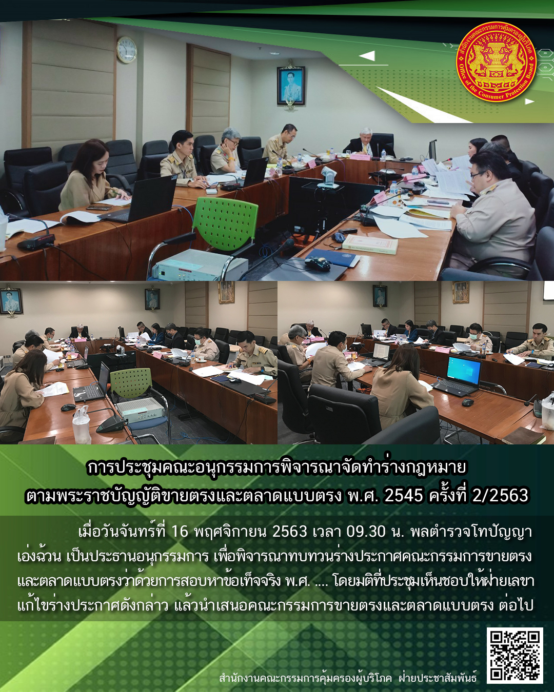 การประชุมคณะอนุกรรมการพิจารณาจัดทำร่างกฎหมายตามพระราชบัญญัติขายตรงและตลาดแบบตรง พ.ศ. 2545 ครั้งที่ 2/2563