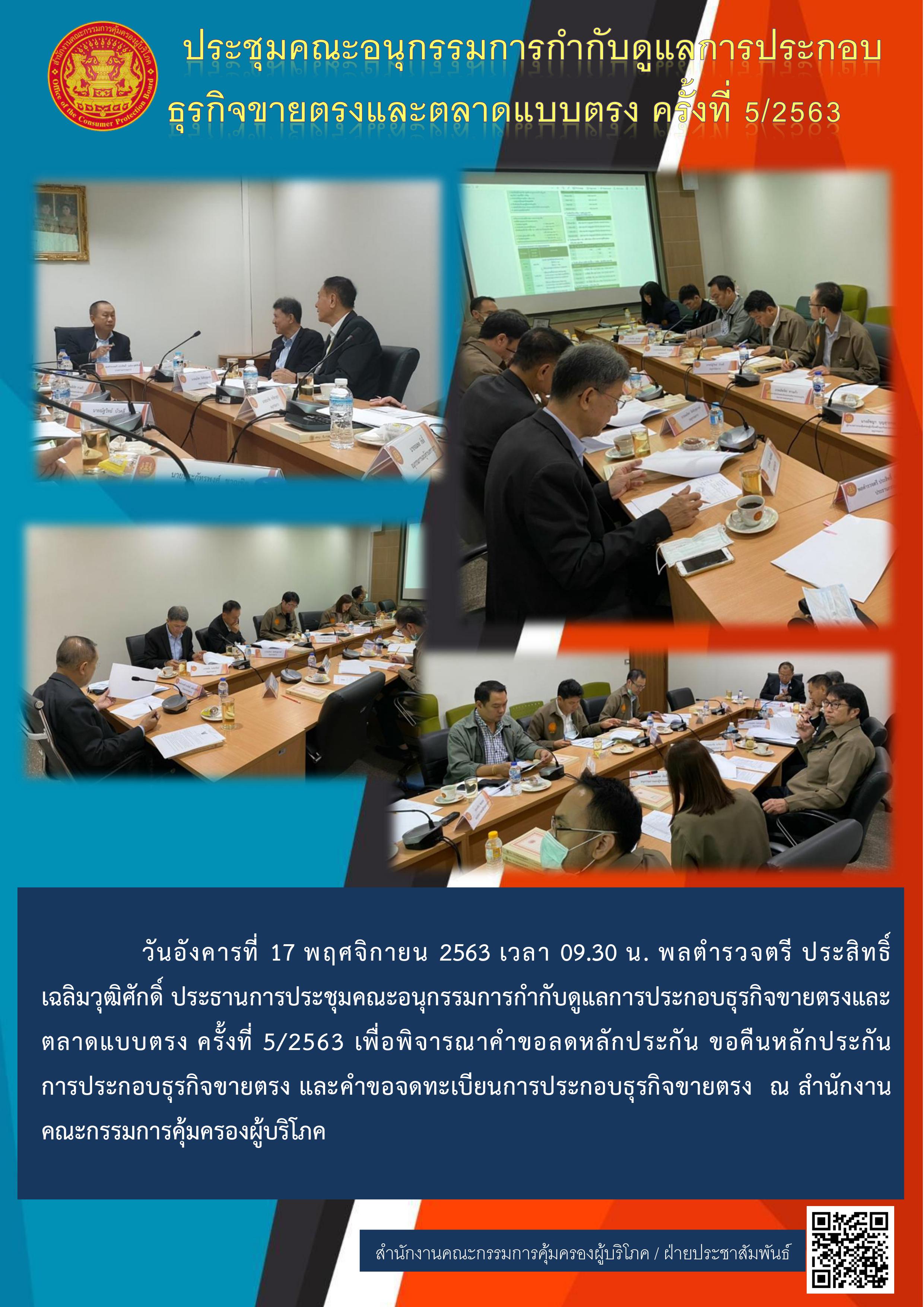 การประชุมคณะอนุกรรมการกำกับดูแลการประกอบธุรกิจขายตรงและตลาดแบบตรง ครั้งที่ 5/2563