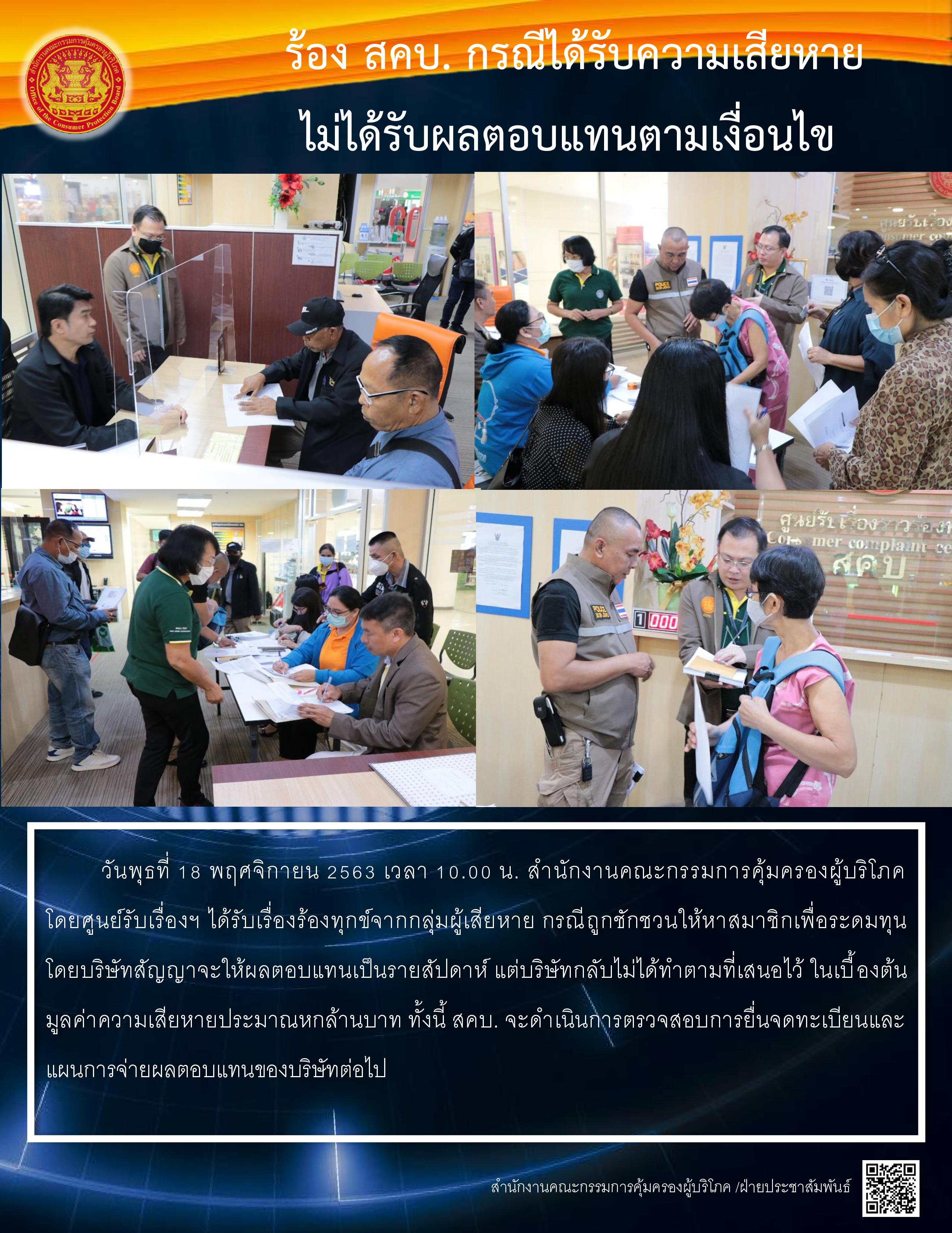 ร้อง สคบ. กรณีได้รับความเสียหายไม่ได้รับผลตอบแทนตามเงื่อนไข