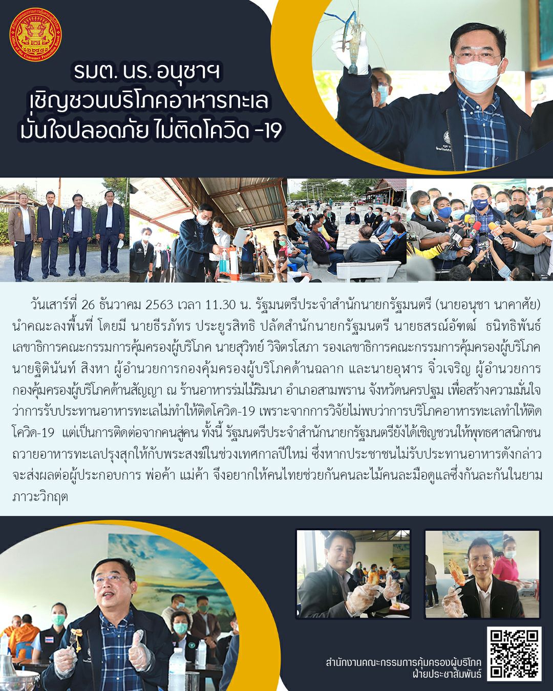 รมต.นร. อนุชาฯ เชิญชวนบริโภคอาหารทะเลมั่นใจปลอดภัยไม่ติดโควิด -19