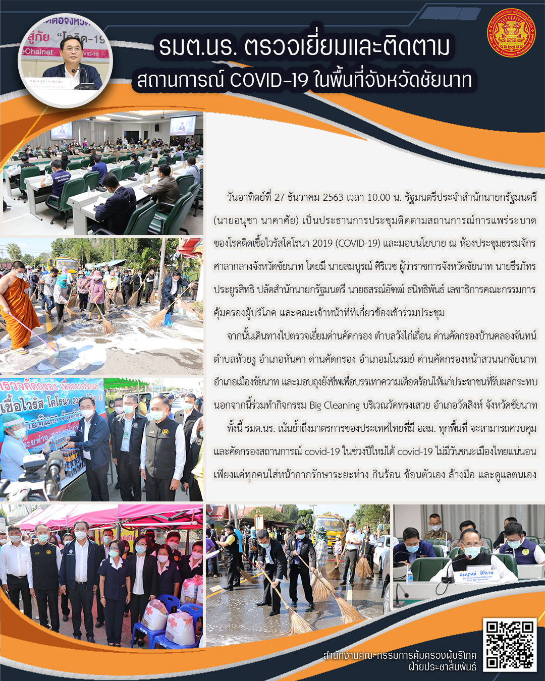 รมต.นร.ตรวจเยี่ยมและติดตามสถานการณ์ COVID-19 ในพื้นที่จังหวัดชัยนาท