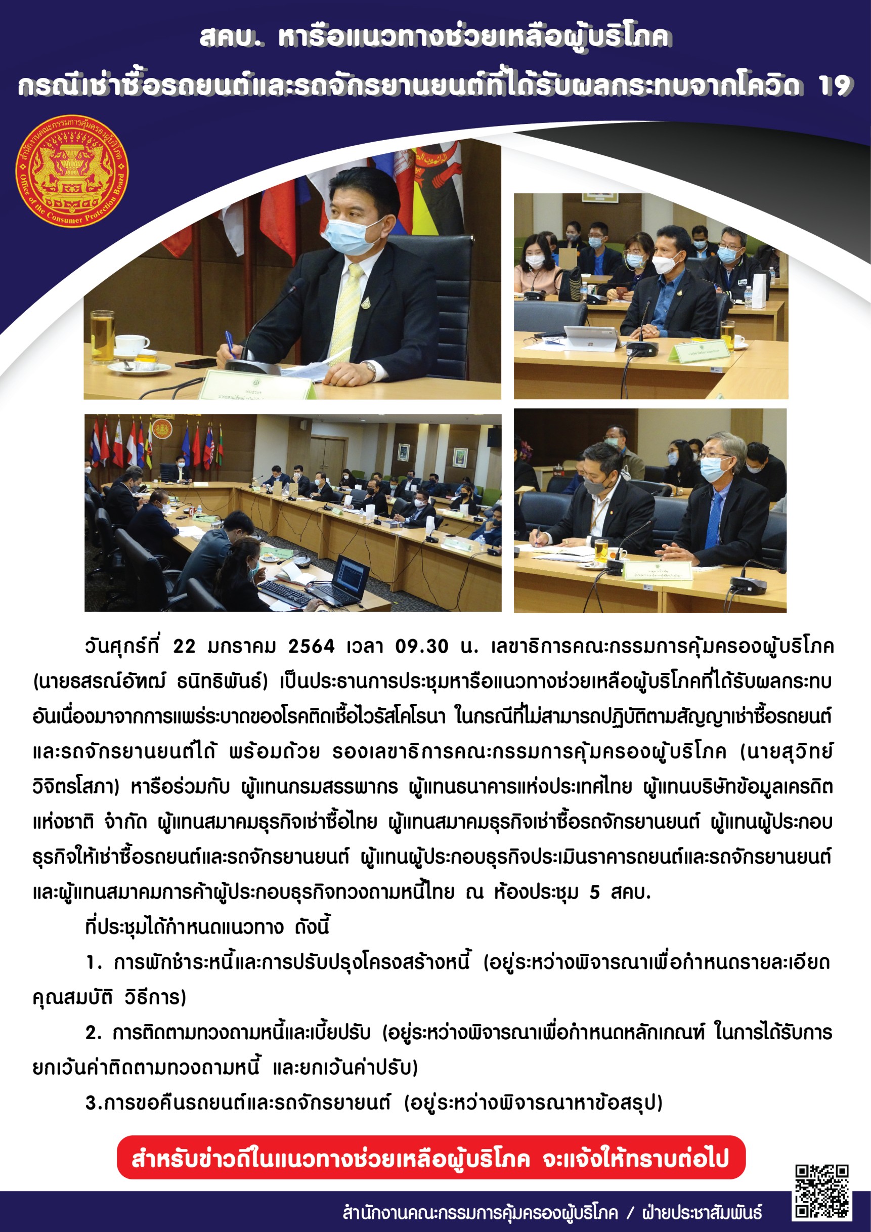 สคบ. หารือแนวทางช่วยเหลือผู้บริโภค กรณีเช่าซื้อรถยนต์และรถจักรยานยนต์ที่ได้รับผลกระทบจากโควิด 19