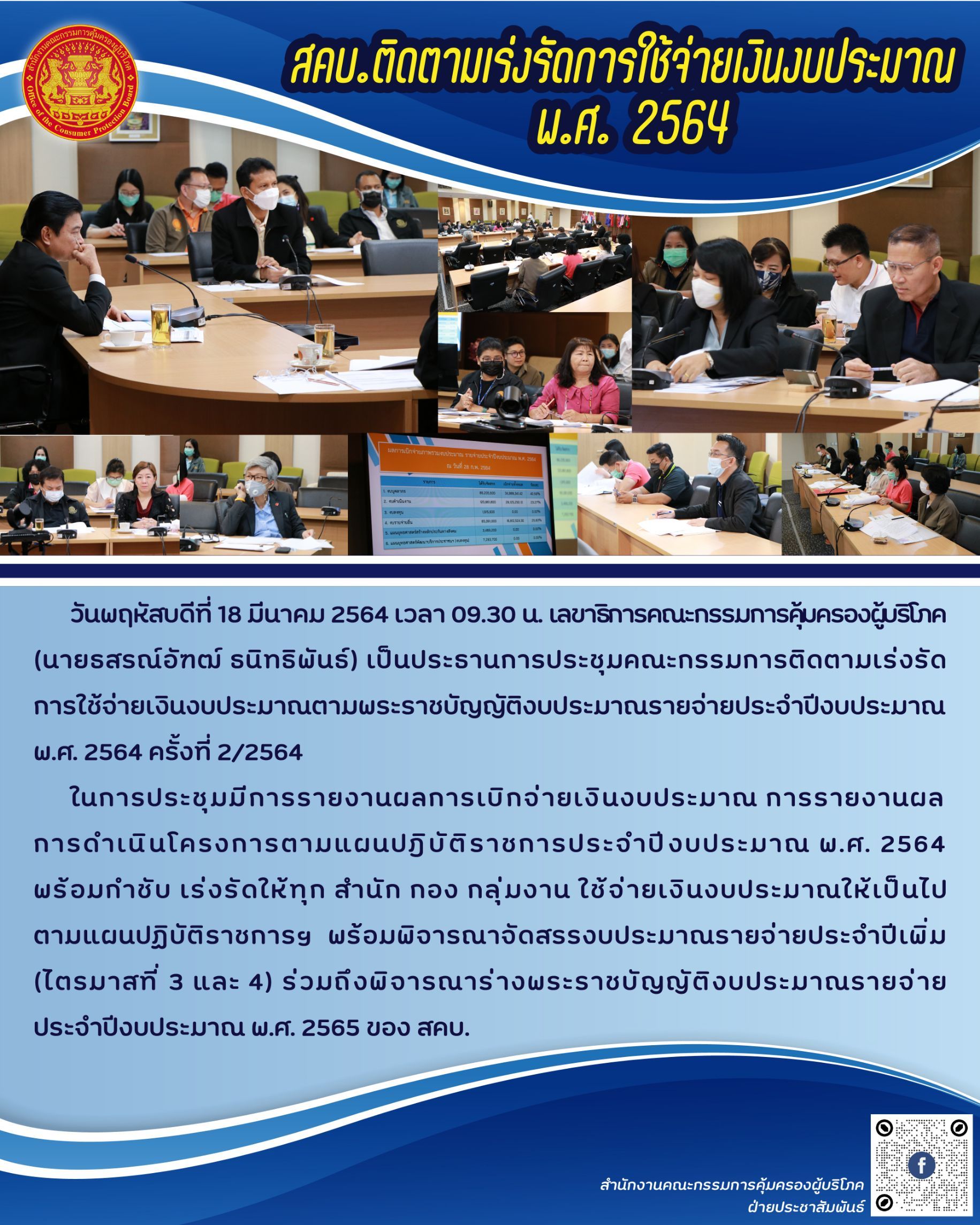สคบ.ติดตามเร่งรัดการใช้จ่ายเงินงบประมาณ พ.ศ. 2564