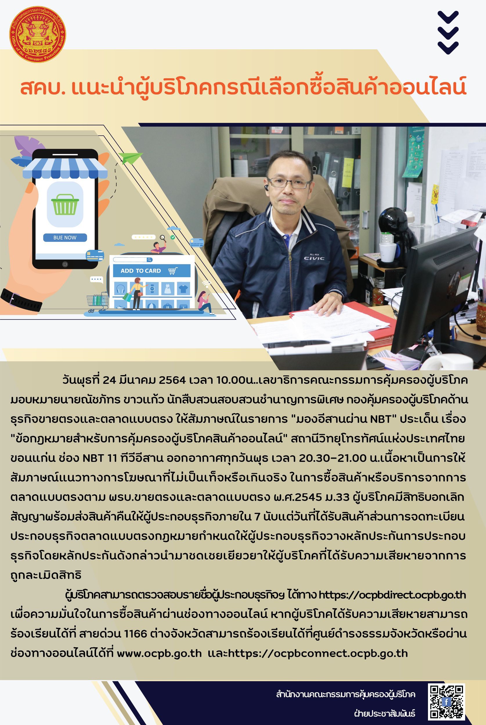 สคบ.แนะนำผู้บริโภคกรณีเลือกซื้อสินค้าออนไลน์