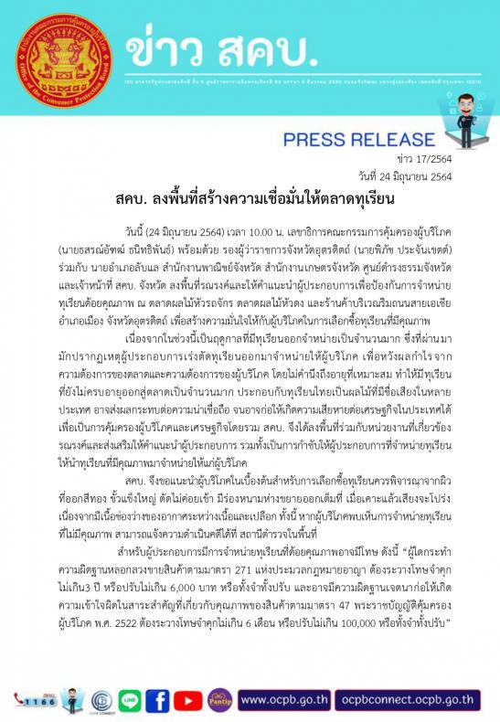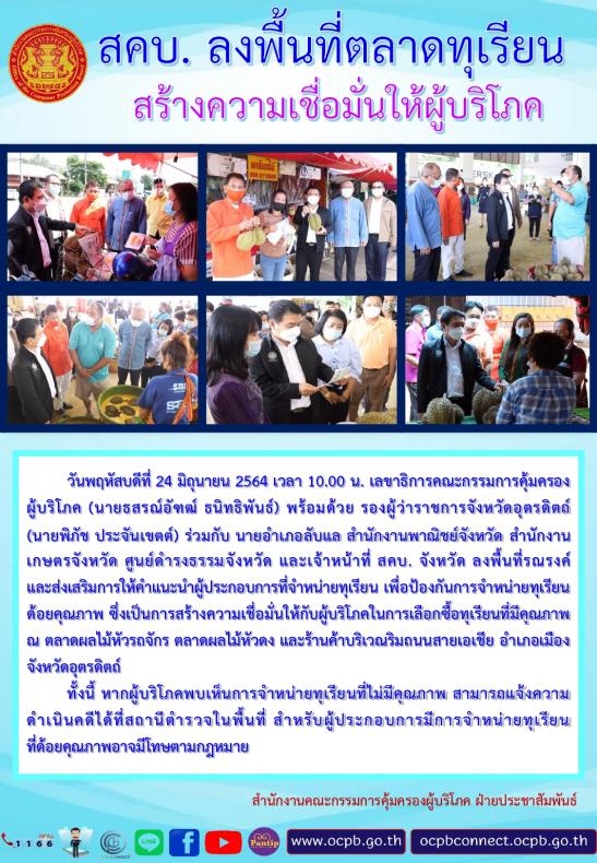 สคบ.​ ลงพื้นที่สร้างความมั่นใจให้ตลาดทุเรียน