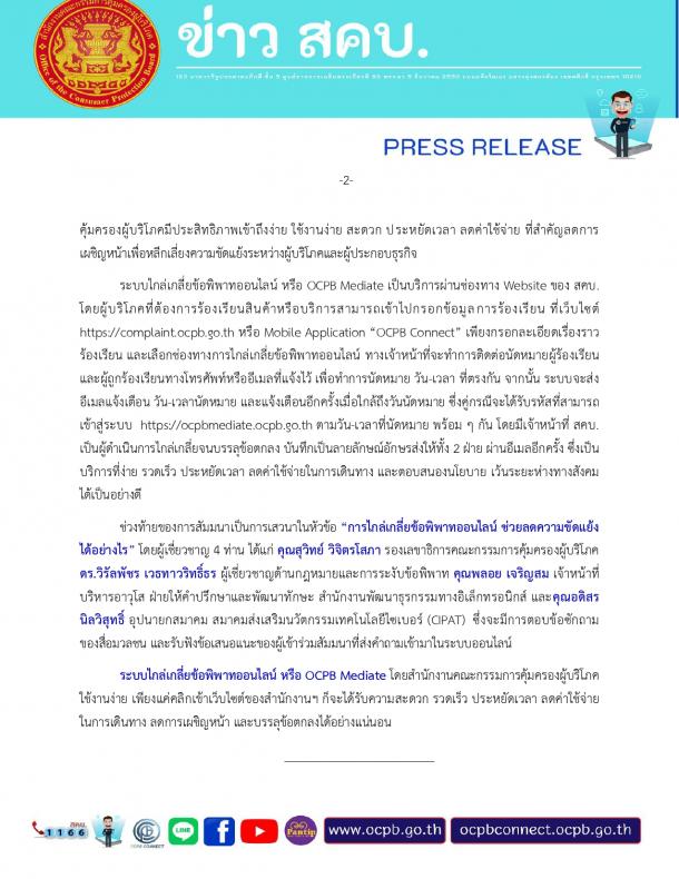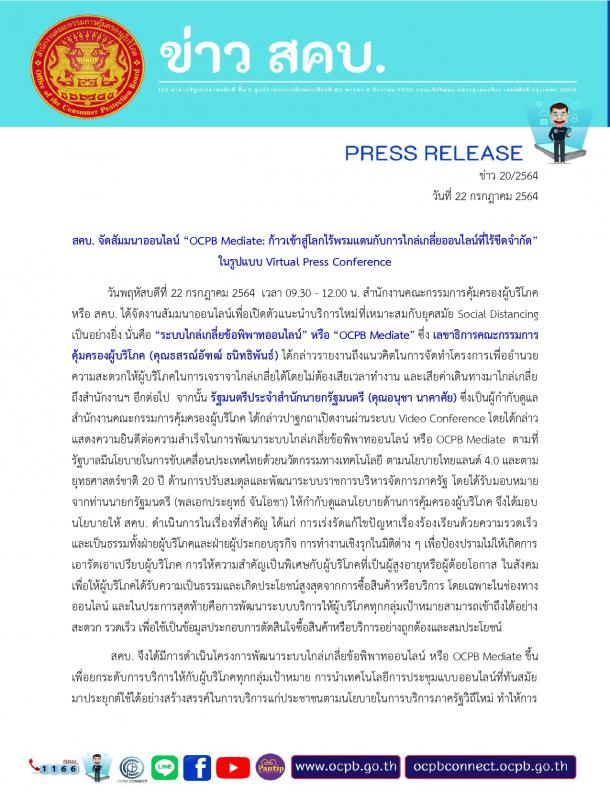 "OCPB Mediate : ก้าวเข้าสู่โลกไร้พรมแดนกับการไกล่เกลี่ยออนไลน์ที่ไร้ขีดจำกัด"