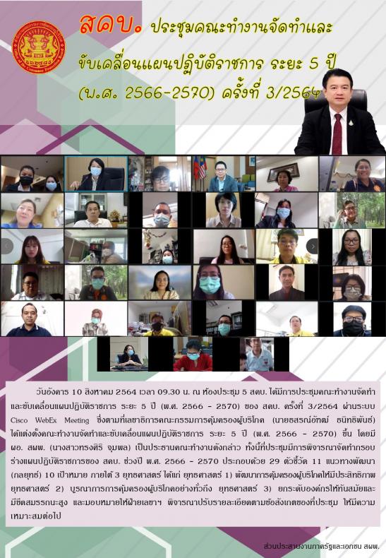 สคบ. ประชุมคณะทำงานจัดทำและขับเคลื่อนแผนปฏิบัติราชการ ระยะ 5 ปี (พ.ศ. 2566-2570) ครั้งที่ 3/2564