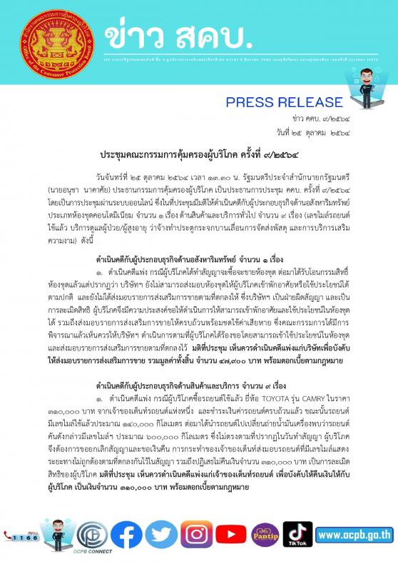 การประชุมคณะกรรมการคุ้มครองผู้บริโภค ครั้งที่ 9/2564