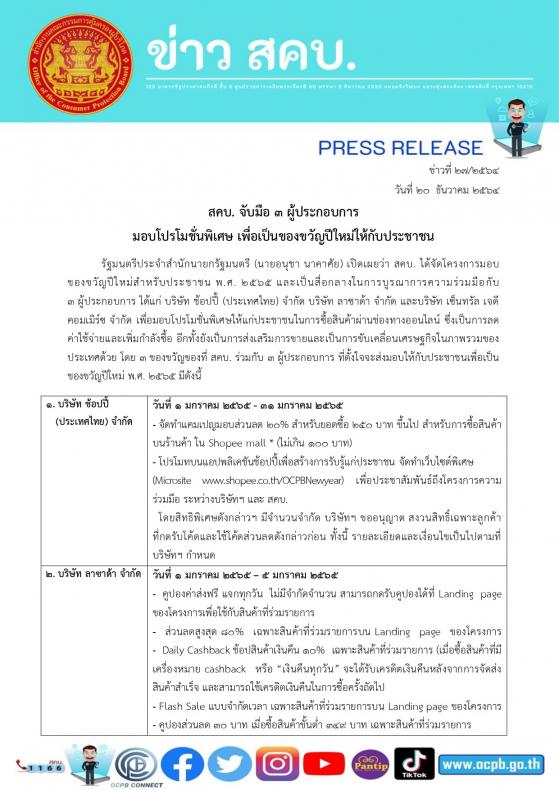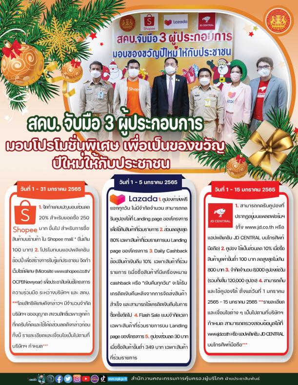 สคบ. จับมือ 3 ผู้ประกอบการ มอบโปรโมชั่นพิเศษ เพื่อเป็นของขวัญปีใหม่ให้กับประชาชน