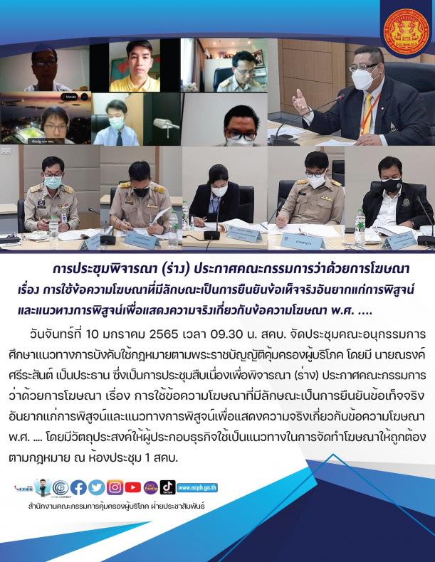 การประชุมพิจารณา (ร่าง) ประกาศคณะกรรมการว่าด้วยการโฆษณา เรื่องการใช้ข้อความโฆษณาที่มีลักษณะเป็นการยืนยันข้อเท็จจริงอันยากแก่การพิสูจน์และแนวทางการพิสูจน์เพื่อแสดงความจริงเกี่ยวกับข้อความโฆษณา พ.ศ. ....