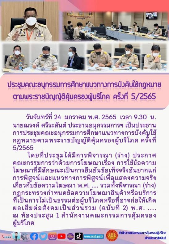 การประชุมคณะอนุกรรมการศึกษาแนวทางการบังคับใช้กฎหมาย ตามพระราชบัญญัติคุ้มครองผู้บริโภค ครั้งที่ 5/2565