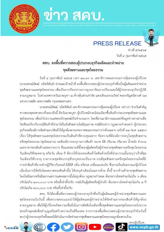 สคบ. ลงพื้นที่ตรวจสอบฉลากสินค้าลุดสังฆทานและชุดไทยธรรม