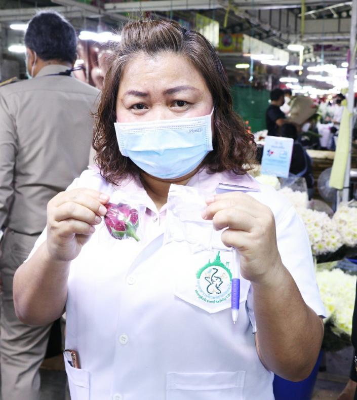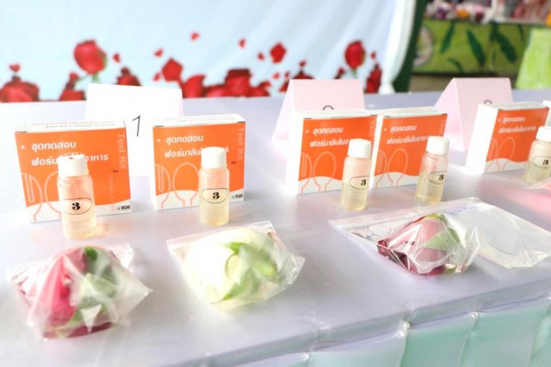 ณ ศูนย์กลางตลาดดอกไม้ปากคลองตลาดใหม่ เขตตลิ่งชัน กรุงเทพมหานคร โดยสุ่มเก็บตัวอย่างดอกกุหลาบและน้ำที่ใช้แช่ดอกไม้มาทดสอบการปนเปื้อนสารฟอร์มาลีนด้วยชุดทดสอบอย่างง่าย (Test Kit) พบว่า ตลาดขายดอกไม้ดังกล่าวไม่มีการเจือปน