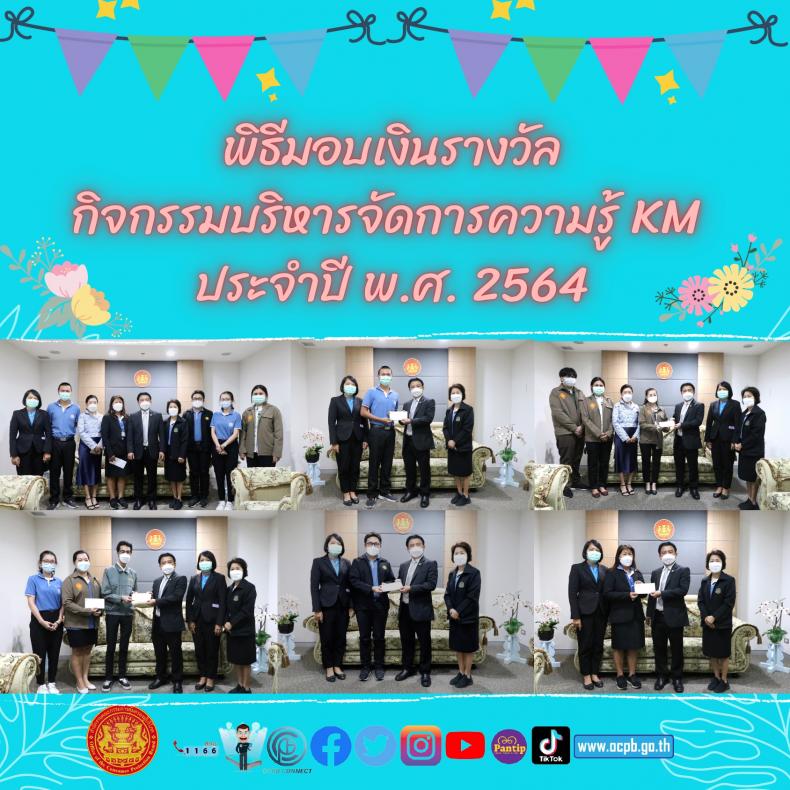 พิธีมอบเงินรางวัลกิจกรรมบริหารจัดการความรู้ KM ประจำปี พ.ศ. 2564