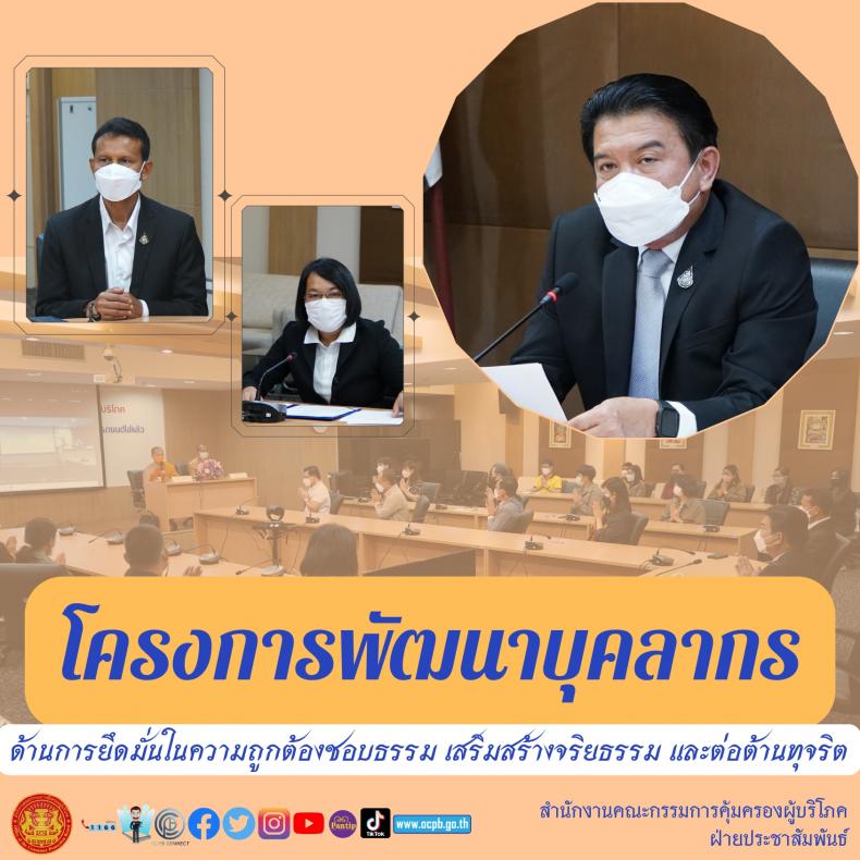 วันอังคารที่ 29 มีนาคม 2565 เวลา 8.30 น. เลขาธิการคณะกรรมการคุ้มครองผู้บริโภค (นายธสรณ์อัฑฒ์ ธนิทธิพันธ์) เป็นประธานในพิธีเปิดโครงการพัฒนาบุคลากร ด้านการยึดมั่นในความถูกต้องชอบธรรม เสริมสร้างจริยธรรม และต่อต้านการทุจริต โดยมี นางสาวทรงศิริ จุมพล เลขานุการกรม กล่าวรายงานเพื่อพัฒนาบุคลากรให้เกิดความยึดมั่นในหลักความถูกต้องชอบธรรม คุณธรรมจริยธรรม และมีจิตสำนึกต่อต้านการทุจริต สามารถนำความรู้ที่ได้รับไปปรับใช้ในการพัฒนาตนเอง และประยุกต์ใช้ให้เกิดประโยชน์ในการปฏิบัติงานได้