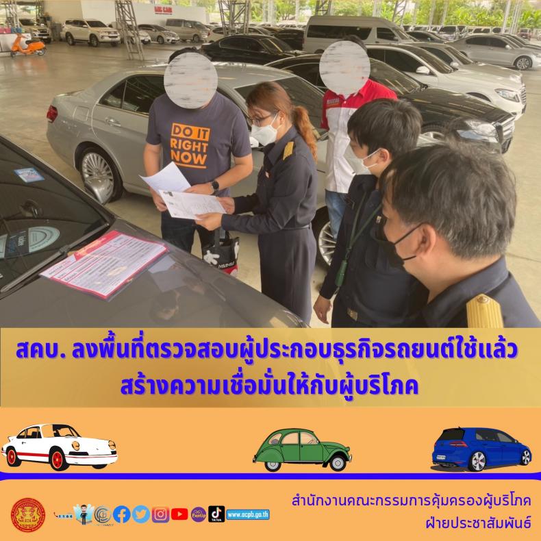 สคบ. ลงพื้นที่ตรวจสอบผู้ประกอบธุรกิจรถยนต์ใช้แล้ว สร้างความเชื่อมั่นให้กับผู้บริโภค