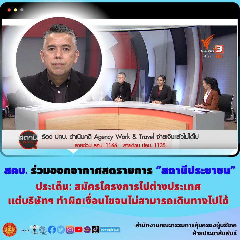 สคบ. ร่วมออกอากาศสดรายการ “สถานีประชาชน” ประเด็น: สมัครโครงการไปต่างประเทศ แต่บริษัทฯ ทำผิดเงื่อนไขจนไม่สามารถเดินทางไปได้