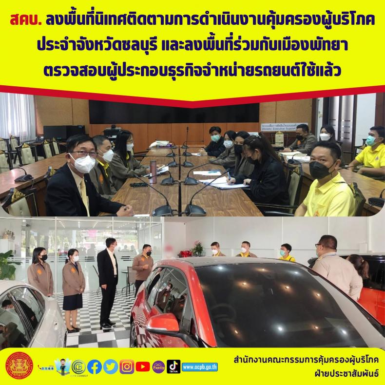 สคบ. ลงพื้นที่นิเทศติดตามการดำเนินงานคุ้มครองผู้บริโภคประจำจังหวัดชลบุรี และลงพื้นที่ร่วมกับเมืองพัทยาตรวจสอบผู้ประกอบธุรกิจจำหน่ายรถยนต์ใช้แล้ว