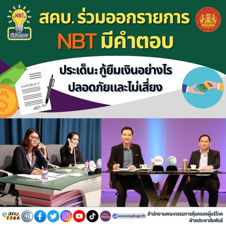 สคบ. ร่วมออกรายการ "NBT มีคำตอบ" ประเด็น : “กู้ยืมเงินอย่างไร ปลอดภัยและไม่เสี่ยง”