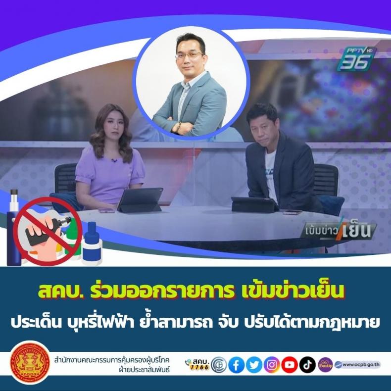 สคบ.ร่วมออกรายการเข้มข่าวเย็น ประเด็น บุหรี่ไฟฟ้า ย้ำสามารถ จับ ปรับได้ตามกฎหมาย