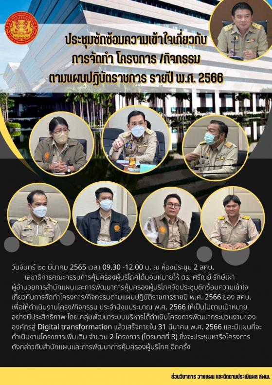 ประชุมซักซ้อมความเข้าใจเกี่ยวกับการจัดทำ โครงการ/กิจกรรม ตามแผนปฏิบัติราชการ รายปี พ.ศ. 2566 ครั้งที่ 1