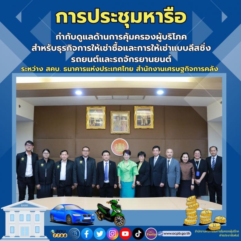 การประชุมหารือกำกับดูแลด้านการคุ้มครองผู้บริโภคสำหรับธุรกิจการให้เช่าซื้อและการให้เช่าแบบลีสซิ่งรถยนต์​และรถจักร​ยานยนต์​ ระหว่าง​ สคบ.​ ธนาคารแห่งประเทศไทย​ สำนักงานเศรษฐกิจ​การคลัง